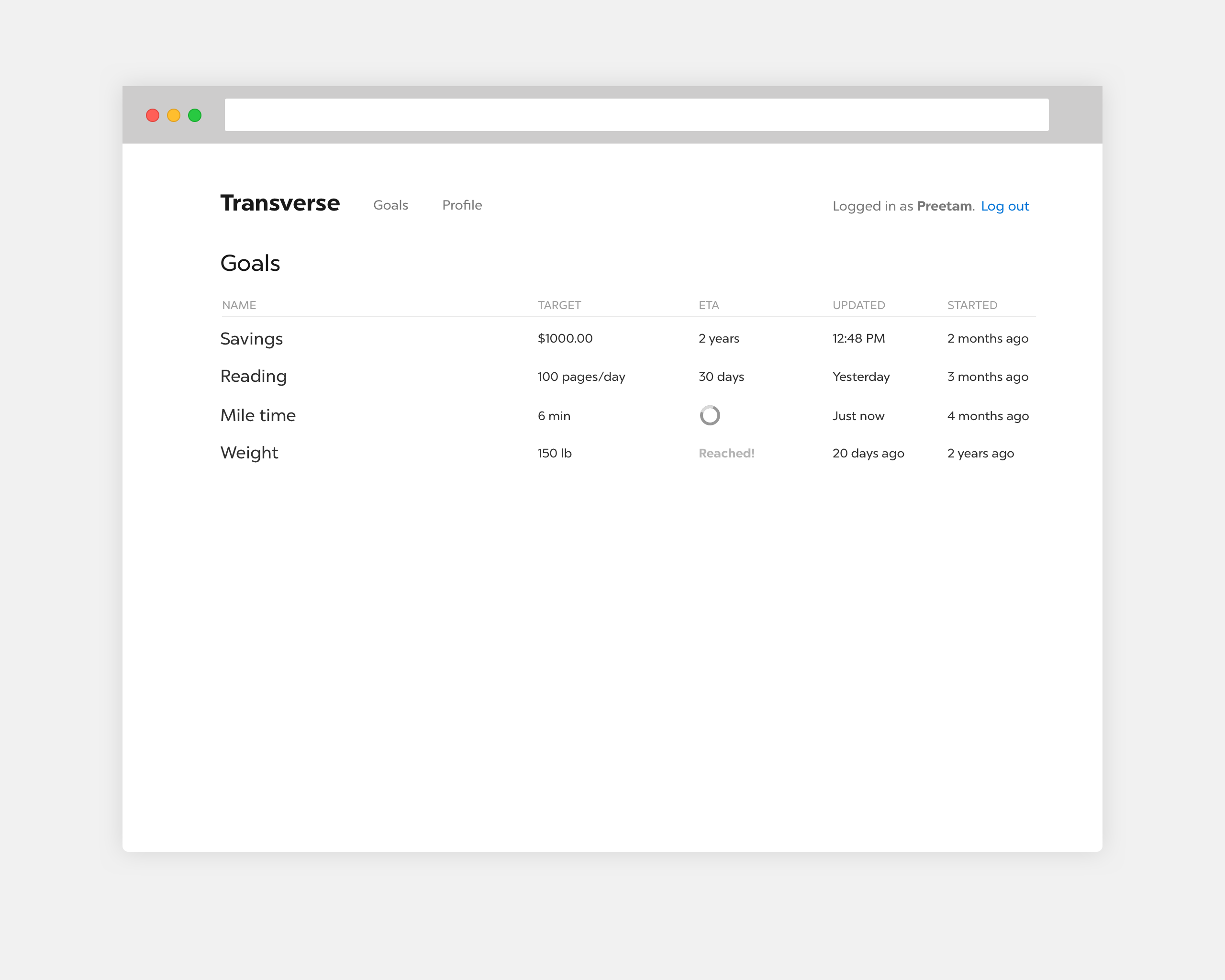 It’s pretty simple: Transverse will tell you when you’ll reach your goals.