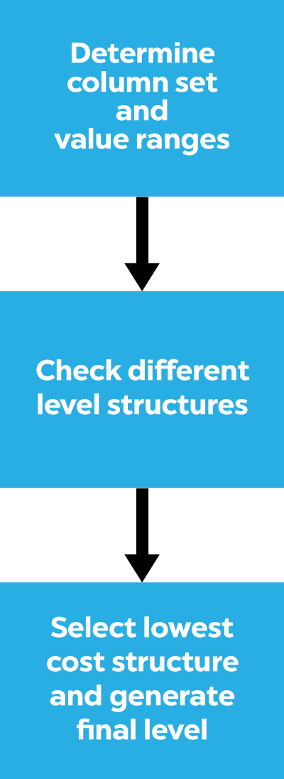 Something else that happens during the initial pass (when column cardinality is checked) is that ranges for the remaining columns are determined to figure out split points for levels. This is because a level can represent a range of values for a column.