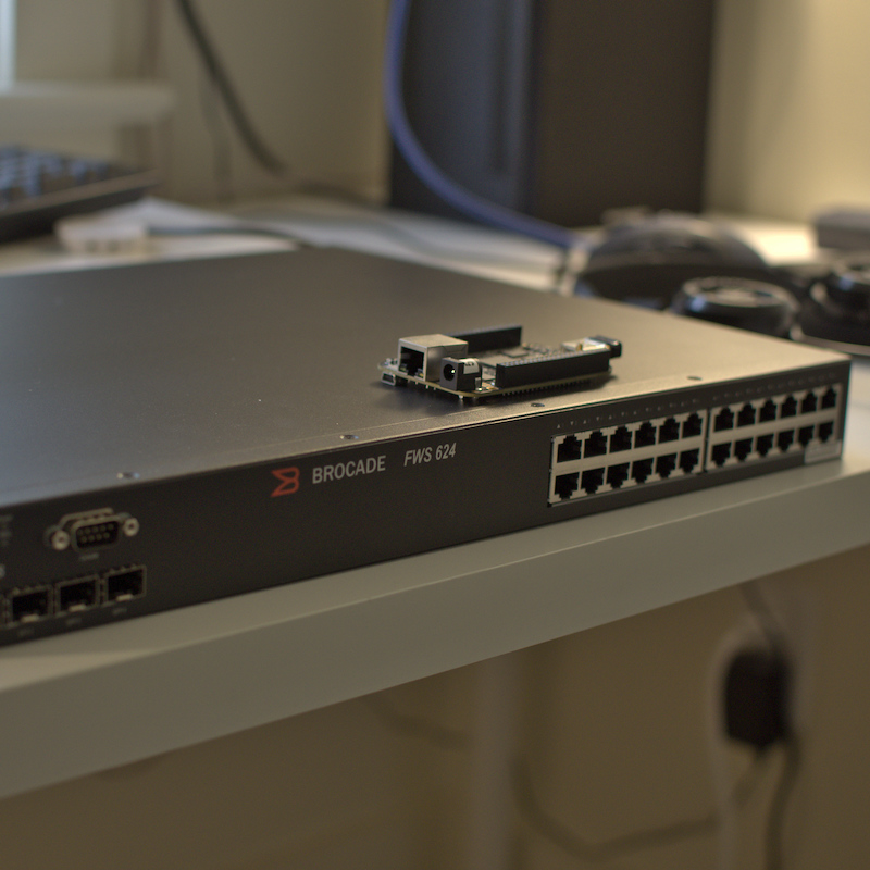 I grabbed a Brocade FWS 624 switch off Ebay. I’m using that for my SNMP tests at home. I think it’s too risky to mess around with production equipment that customers depend on (duh!). This is a layer 2 switch with SNMP and sFlow capability, so it’s really helpful. I really don’t need anything with 24 ports, but it’s hard to find cheap managed switches that support sFlow. I got really lucky with this find on Ebay, especially since it’s a Brocade device and those are the only ones I have experience with.