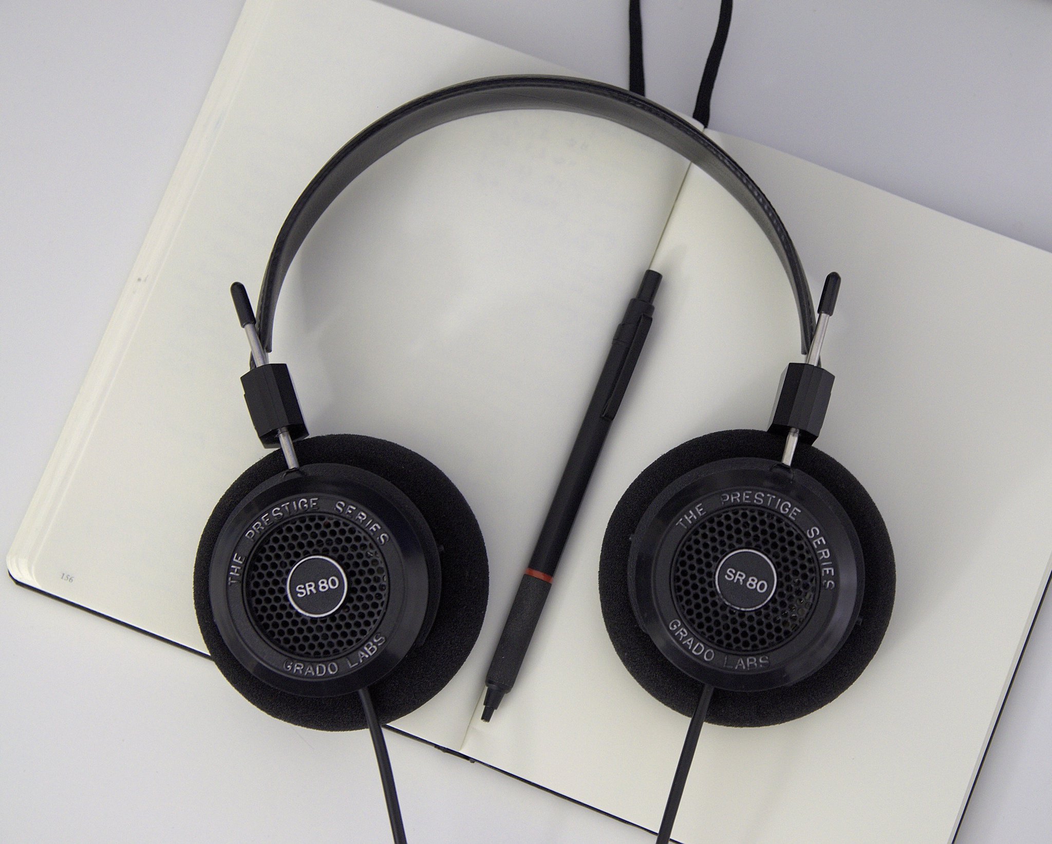Leuchtturm1917 notebook with Grado SR80i headphones and Rotring Rapid Pro pen