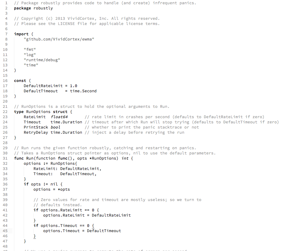 I’m always reading the code directly from the golang.org website. It’s very simple. The only syntax highlighting they do is make the comments green.